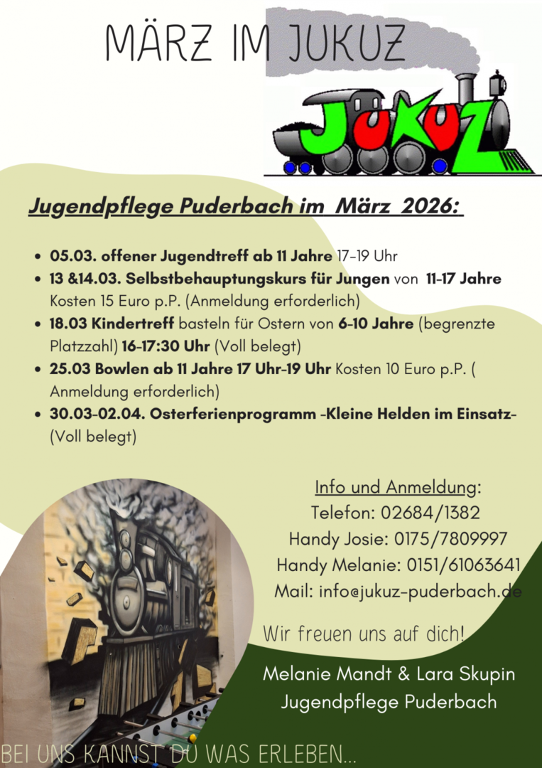 Infos und Anmeldung unter Tel. 02684-1382, info@jukuz-puderbach.de